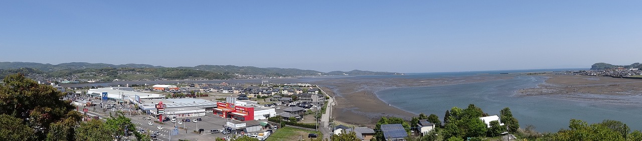 天守閣から見る八坂川 河口 潮干狩りをしてました