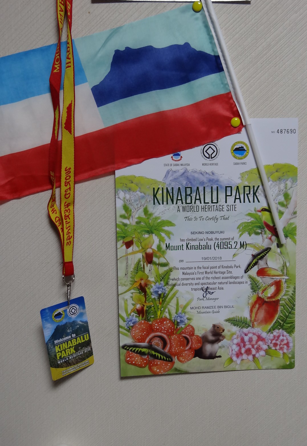 入山許可/ID と 登頂証明書 と サバ州の州旗
