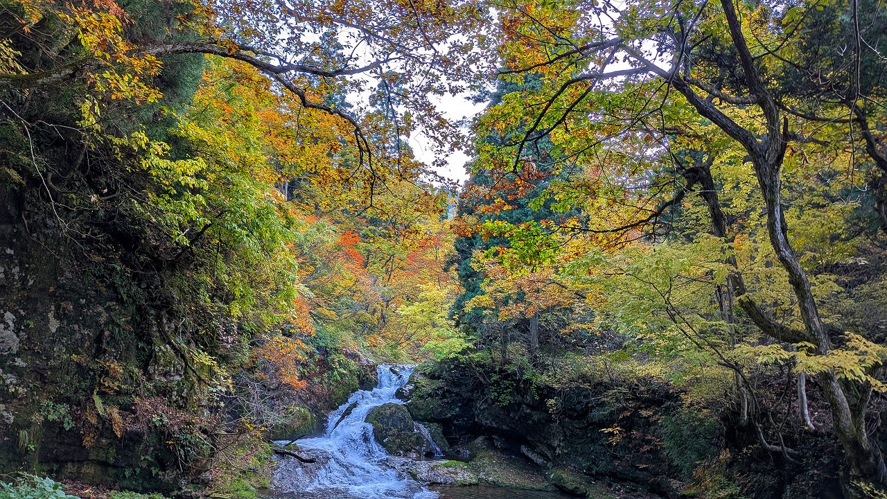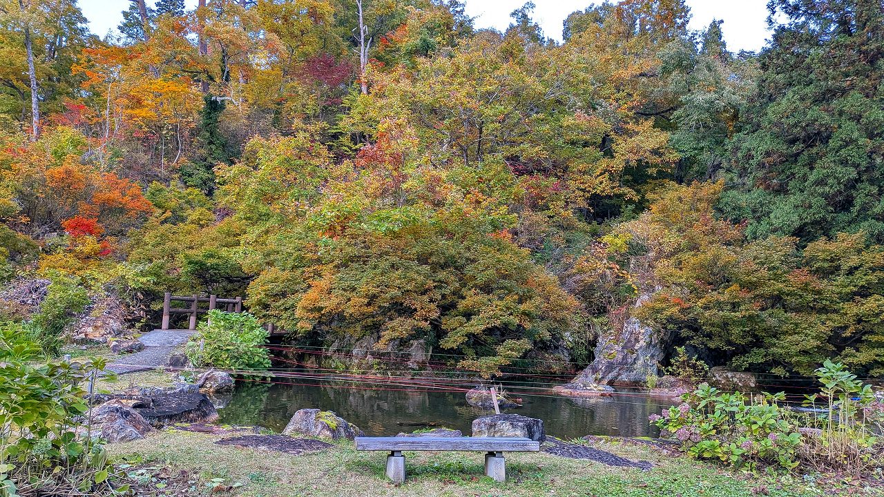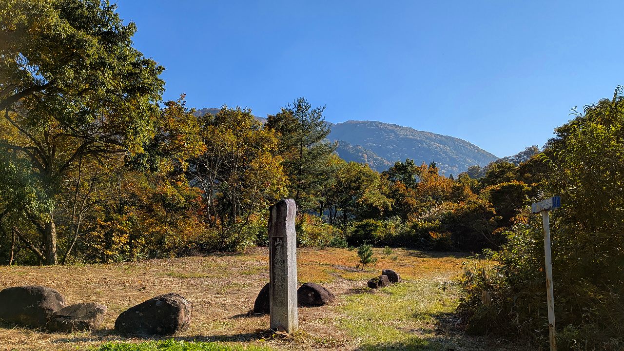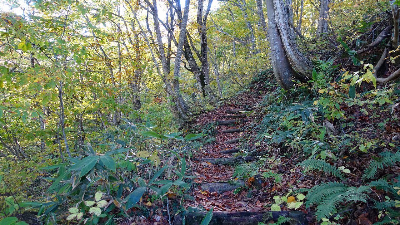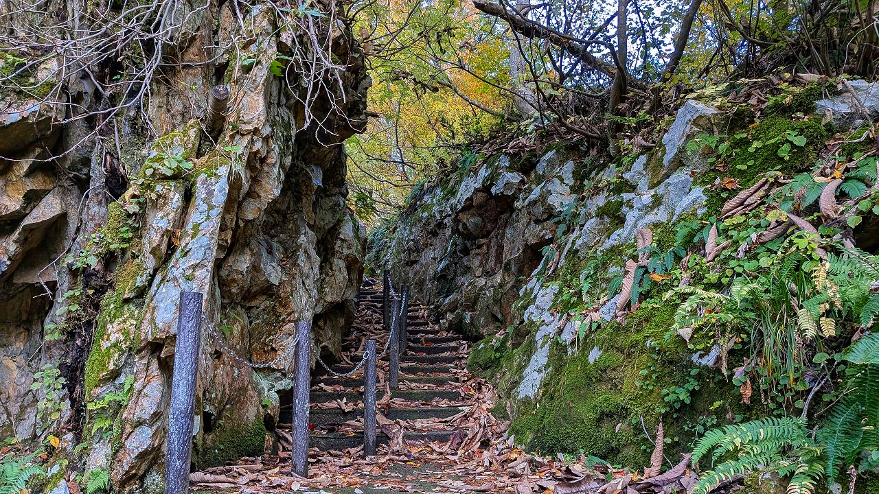 そこからタクシーで山刀伐(なたぎり)峠登山口から紅葉が映える峠みち