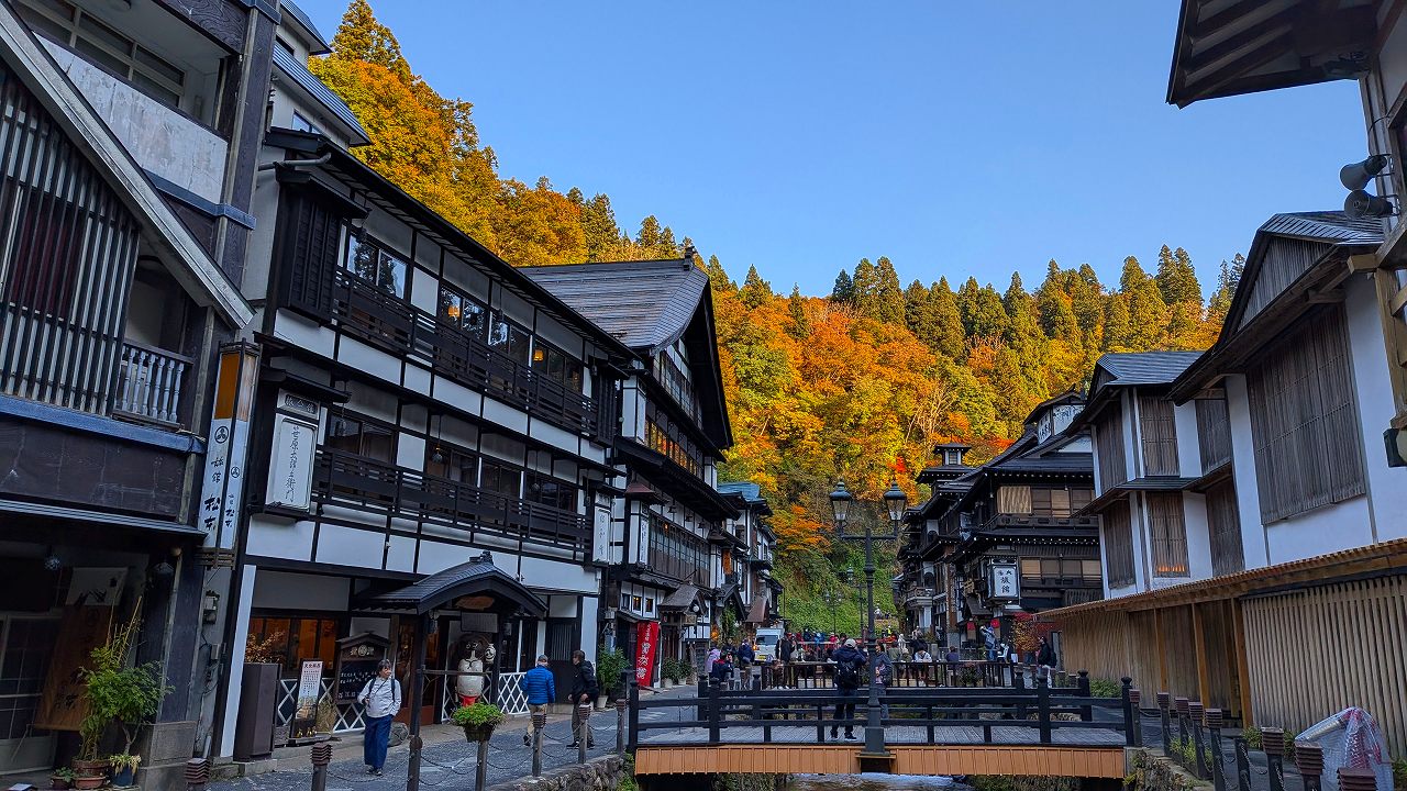 銀山川沿いのレトロな旅館の街並みをそぞろ歩きしました