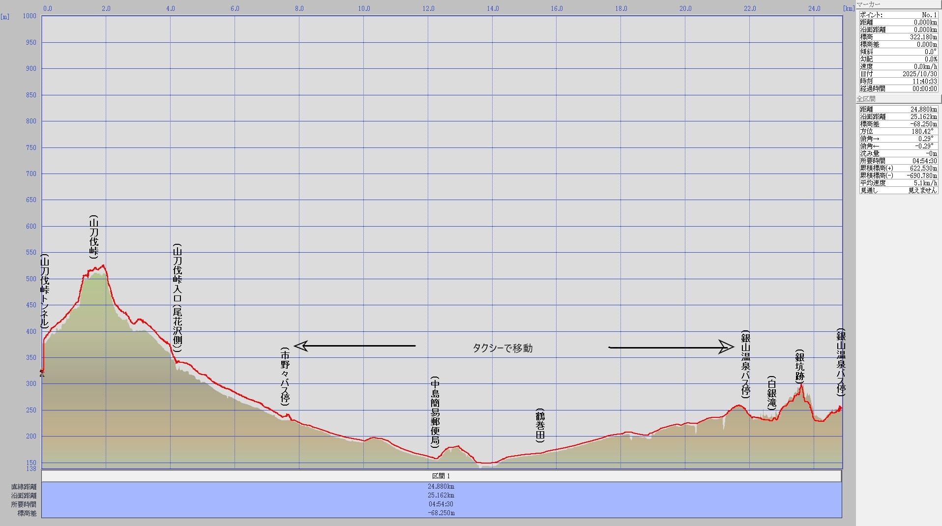 山刀伐峠トンネル~山刀伐峠~市野々~<タクシーで移動>~銀山温泉