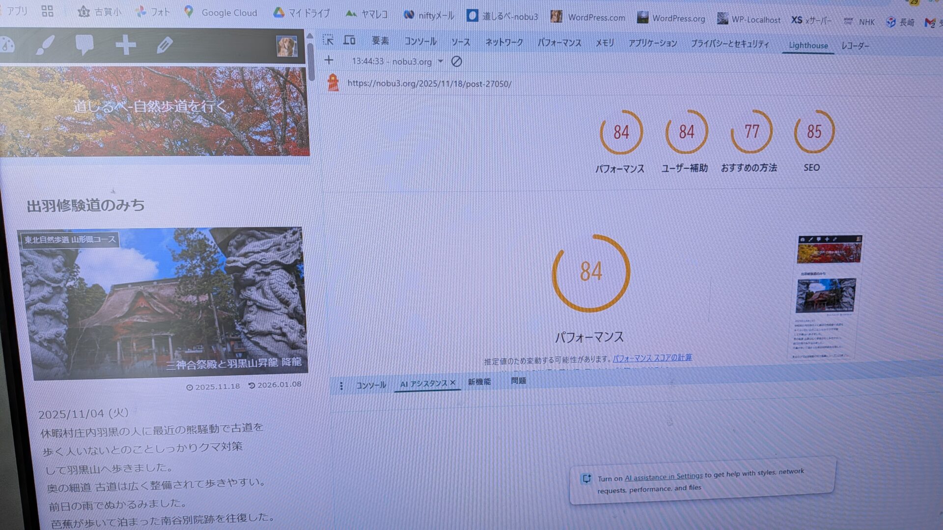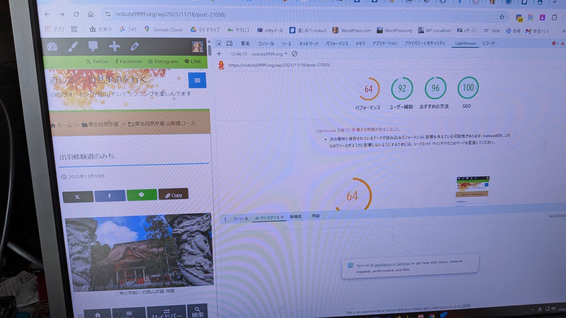 ブラウザChromeからの「Lighthouse レポートの作成」からの