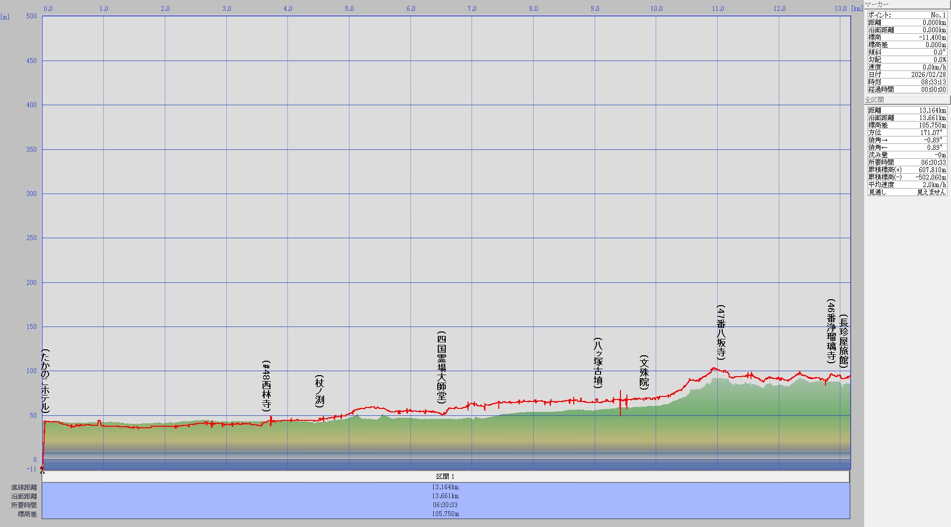 2026.2日目/48番西林寺~文殊院〜47番八坂寺~46番浄瑠璃寺 伊予・愛媛県 40~65札所46番浄瑠璃寺 2026.02.28 2026/02/28 (土) 曇 行動距離13km 宿 : 長珍屋 8:30 たかのこホテル:出発 48番西林寺から文殊院へ向かう途中の四国霊場大師堂でキャリアを引いての歩き、遍路の人と出会う 団塊世代の大阪の人でテント自炊しながら、もう20回近く回っているという、大師堂の中でお遍路談義を1時間近く話しあう google mapで行動軌跡を表示(デバイス:Garmin-GPS-etrex32x)) 大きな地図で見る 48番西林寺 杖ノ淵(じょうのふち) 大師堂の中でお遍路談義 八ッ塚古墳集 衛門三郎の八人の子供を祀ったとの伝説 文殊院/衛門三郎のお墓がある 47番八坂寺 46番浄瑠璃寺 今日の宿/27年前と同じ宿、新しくなってしまった