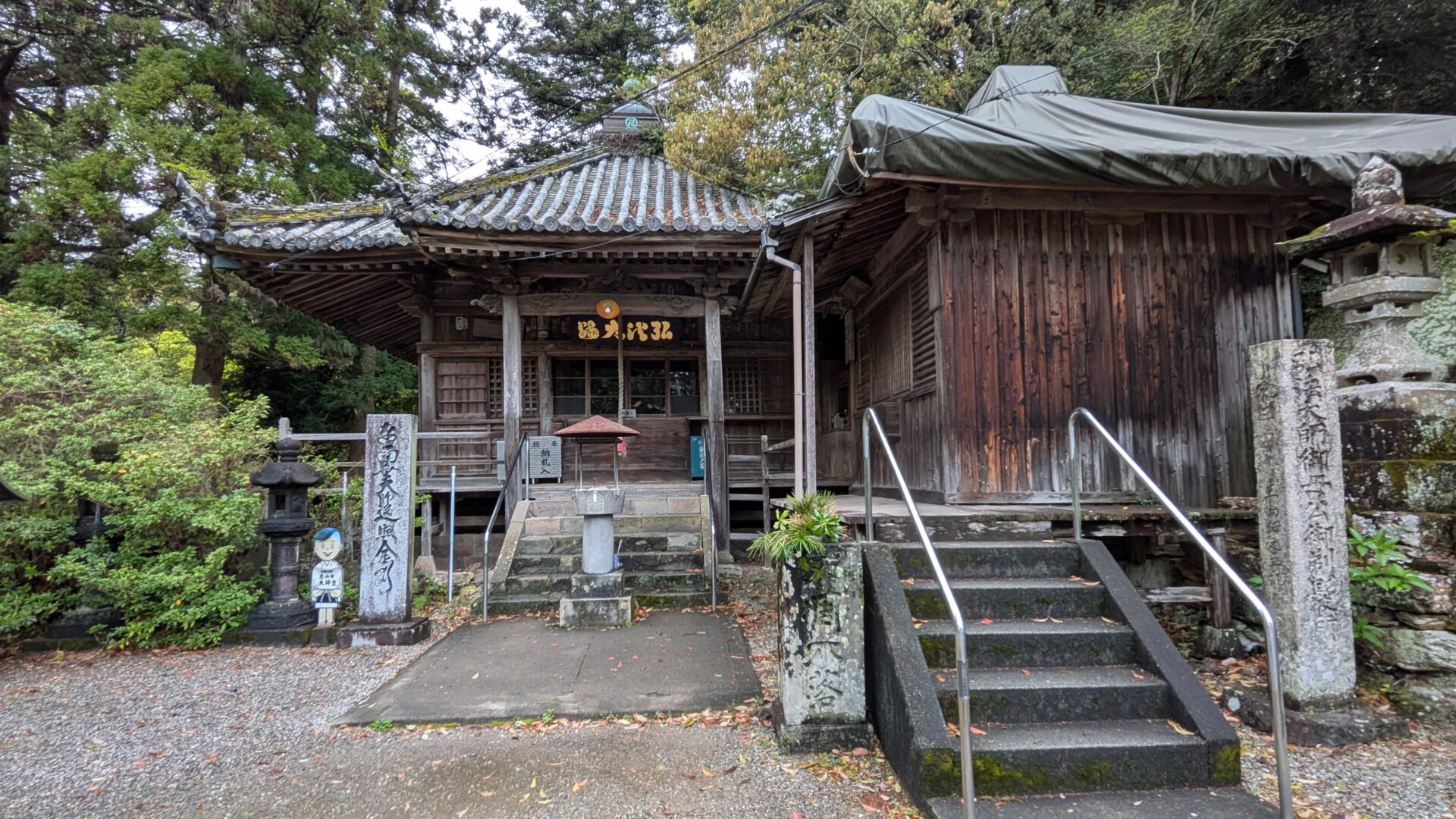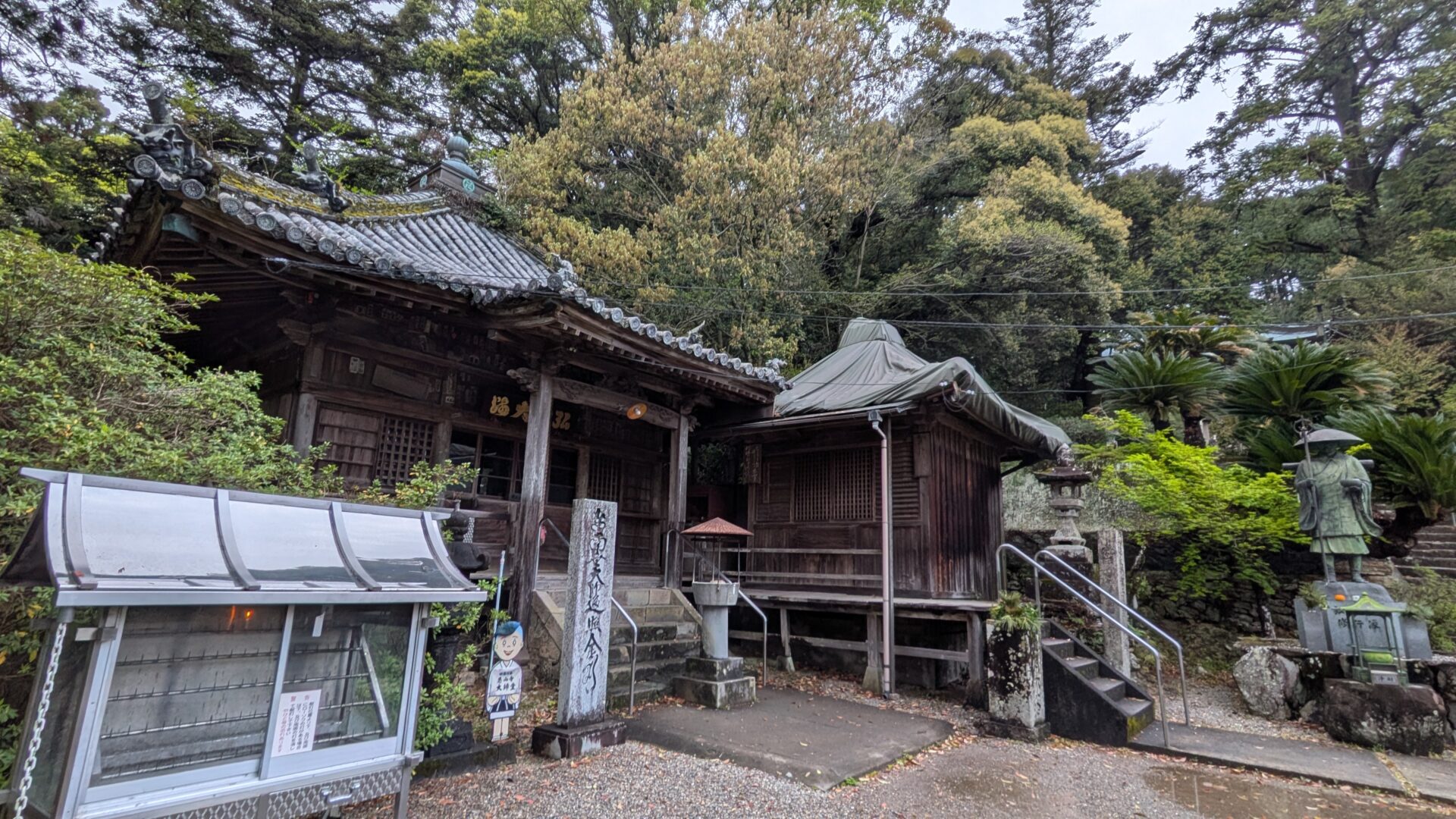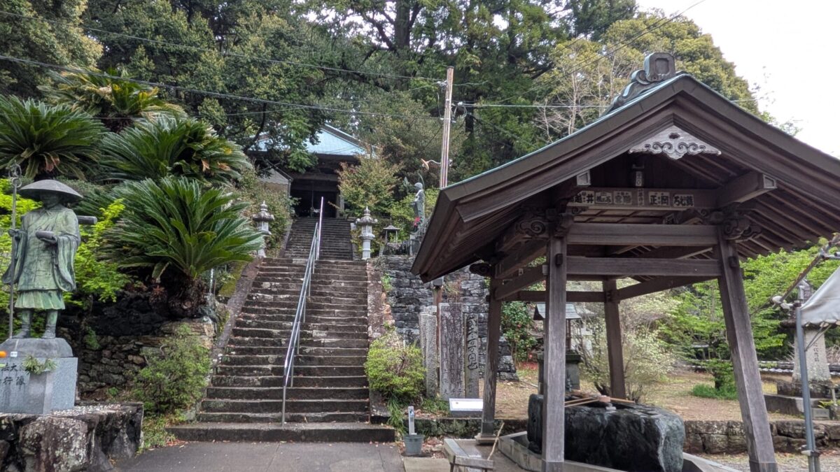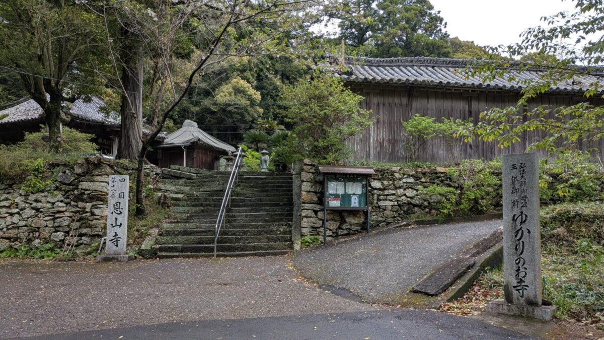 2026.14日目/後半は18番恩山寺〜 阿波・徳島県 1~23札所 2026.04.10 2026/04.10 (金) 雨 徳島阿波おどり空港から徳島駅経由、南小松島駅へ移動。バスの発車時間まで南小松島を散策18番恩山寺、朽ち果てた仁王門川の橋を渡り、その先には天然記念物恩山寺ビランジュへんろ山道を登り、本堂、そして大師堂のそばに、「大師御母公剃髪所」の石碑今日は、恩山寺近くの民宿ちばに宿泊 18番恩山寺 18番恩山寺ビランジュ 小松島市たぬき広場
